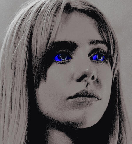 El color de sus poderes es de un azul-violáceo. Normalmente cuándo suele utilizarlos, las escleras de sus ojos también se vuelven de este color.